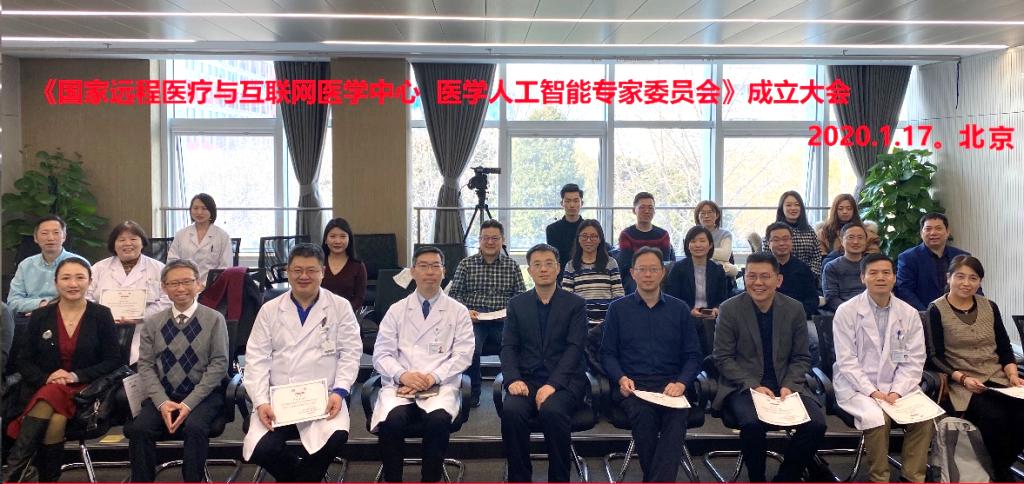 《国家远程医疗与互联网医学中心医学人工智能专家委员会》成立大会部分委员合影
