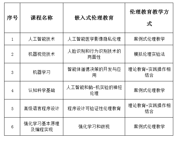 表格:pa集团官网入口人工智能类课程嵌入式伦理教育