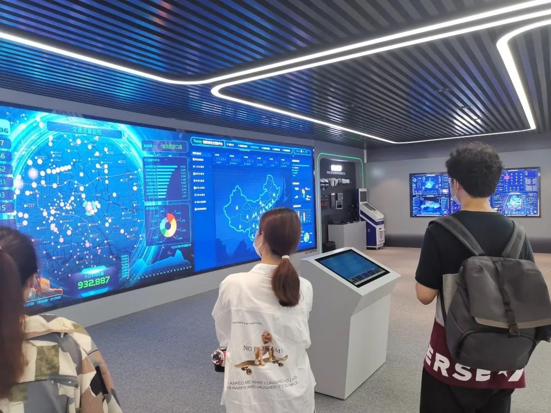走进公司展厅,映入眼帘的是“天行健,君子以自强不息;地势坤,君子以厚德载物”一行大字,这是天地伟业的企业精神。讲解员带领我们了解了企业的发展历程和主要工作方向。通过她的讲解我们了解到,作为全球领先的智能安防解决方案提供商,天地伟业基于人工智能、大数据、云计算、物联网等技术,为公安、政法、交通、金融、教育、水利、环保等行业提供优质技术产品服务。