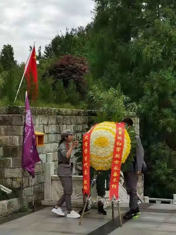 身着红军长征的军装,脚踏烈士陵园的石阶,耳畔传来铿锵有力的入党誓词,置身于扎西红军烈士陵园,一段段红色的历史,一个个鲜活而伟大的故事,都仿佛在我们眼前徐徐浮现。在导游的指引与安排下,实践队员们在党旗下重温入党誓词,庄严默哀3分钟,怀着一颗敬佩的心,为烈士们敬献花圈,在碑前聆听先辈们的故事,在战争旧址细数那一段段艰苦岁月。“人民英雄永垂不朽!”此时不仅仅是一句口号,更是一种崇高的敬仰。