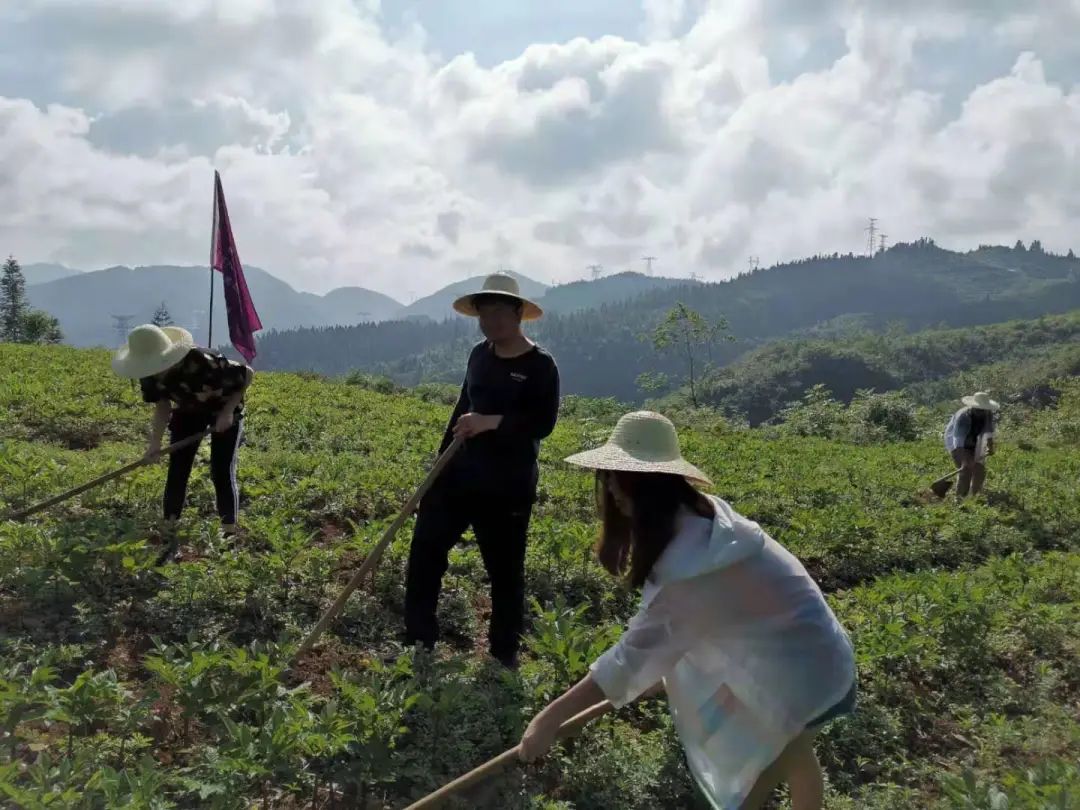 不仅如此,全国各地广受欢迎的“魔芋爽”的原材料魔芋也出自镇雄。镇雄人民结合实际情况,以魔芋种植作为乡村振兴的主要手段之一,实践队的同学们来到魔芋田,扛起锄头,下地除草,切实感受农业种植。太阳暴晒,手掌磨破,辛勤的劳动也有收获,看着一道道毫无杂草的田地,我们的心底满是喜悦。正是劳动人民朴实勤奋的精神,才给了中国走向富强的坚实底气。