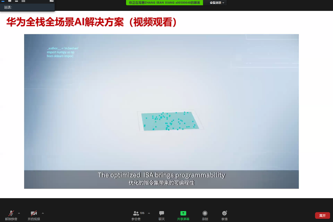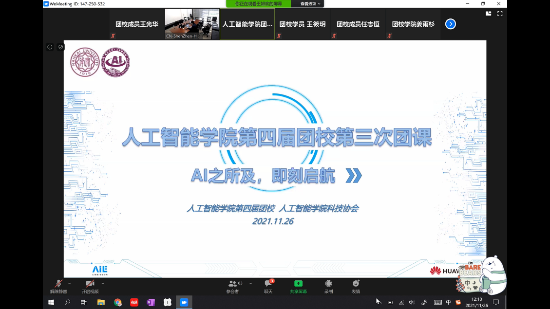 为使同学们更深入地了解数字转型化时代下人工智能在华为各领域的应用,激发起大家对本专业和国家优秀企业的兴趣和热情,PA集团官网第四届团校与科技协会于11月26日中午12:10在线上联合举办了团校第三次团课暨科技文化节系列活动——“智能世界,智能华为”,邀请到华为流程IT SaaS领域首席AI解决方案架构师张翔老师进行交流分享。全体团校学员和对此方面有兴趣的同学参加了此次活动。