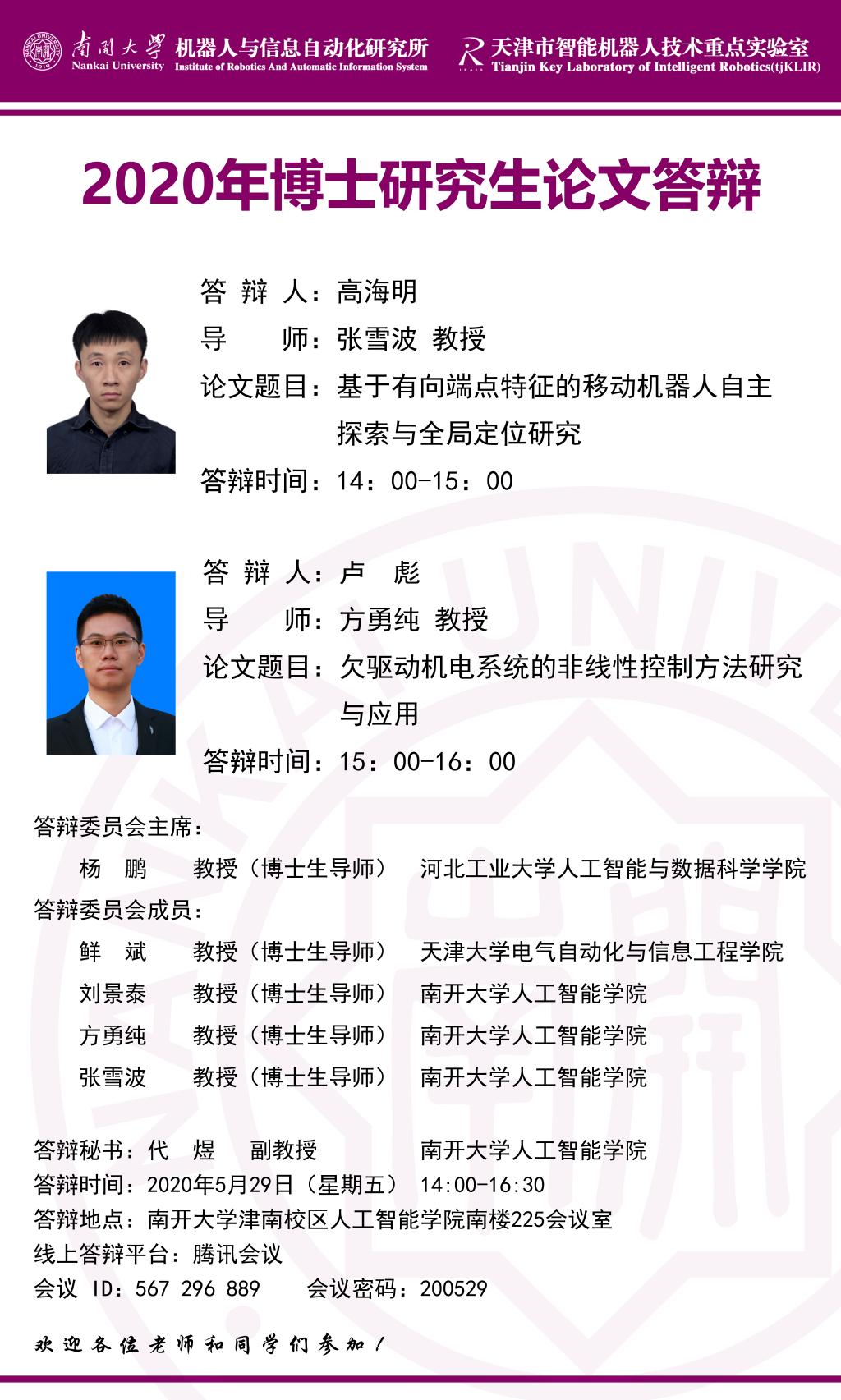 【答辩公告】PA集团官网博士研究生高海明、卢彪毕业论文答辩公告