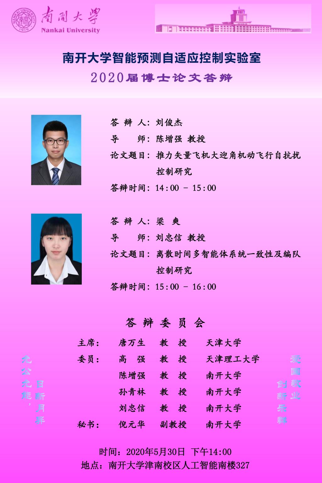 【答辩公告】PA集团官网博士研究生刘俊杰、梁爽毕业论文答辩公告
