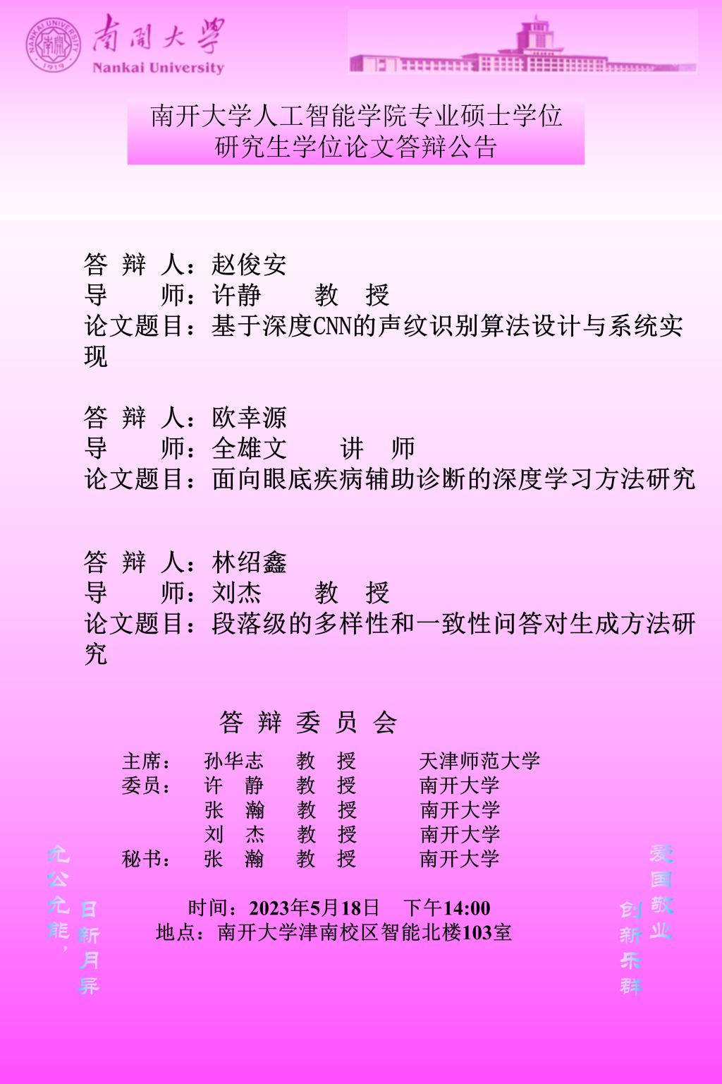 【答辩】2023届夏季答辩公告