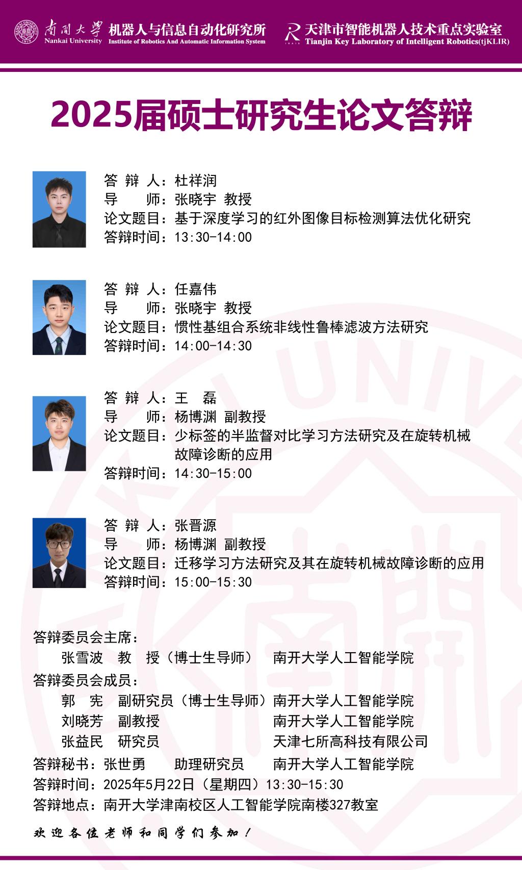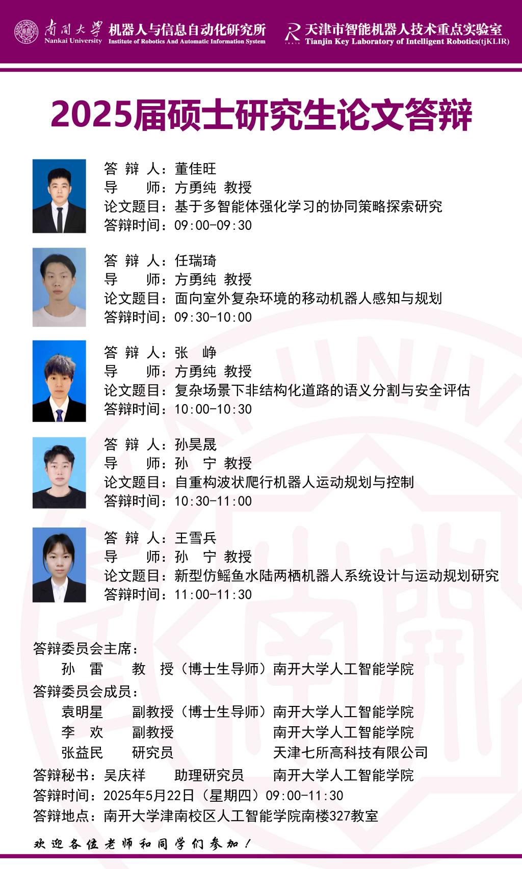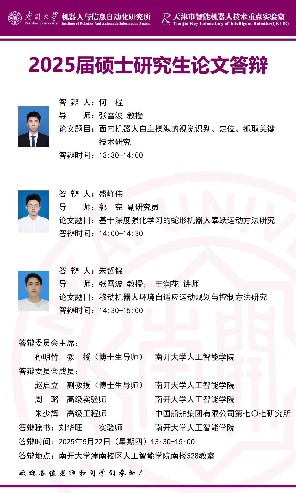 【答辩】2025届夏季毕业答辩公告----机器人与信息自动化研究所(专硕)