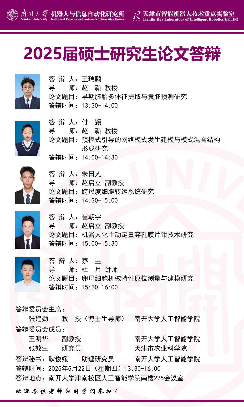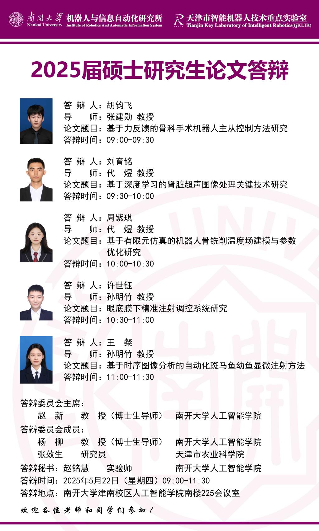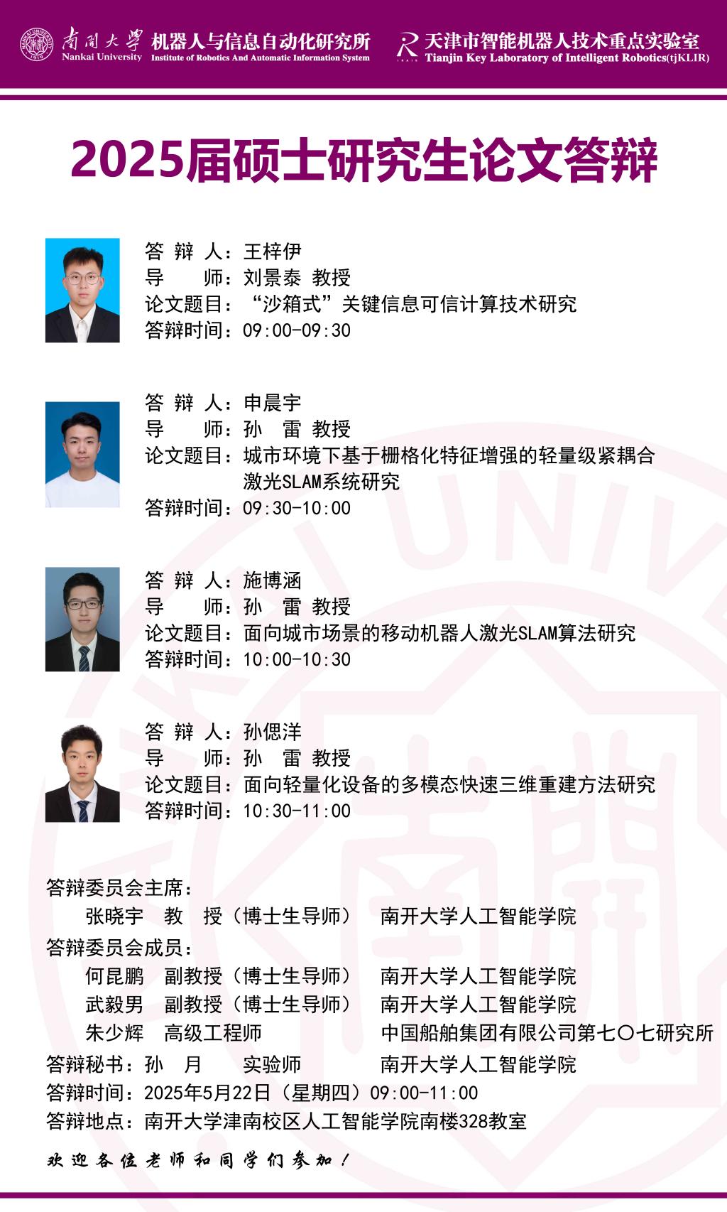 【答辩】2025届夏季毕业答辩公告----机器人与信息自动化研究所(专硕)