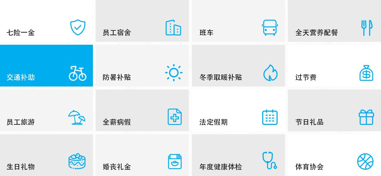 4.多样补贴:过节费、供暖费、交通费、丧葬费、结婚礼金;