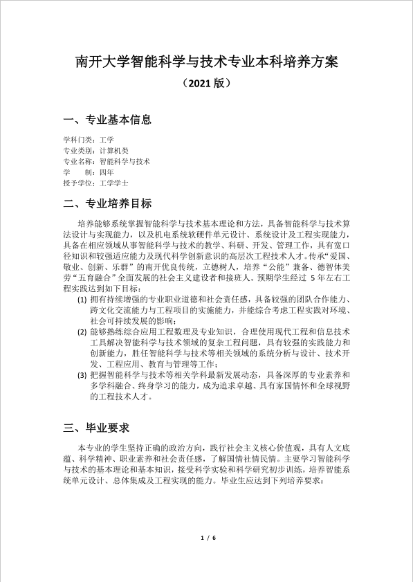 pa集团官网入口智能科学与技术专业本科培养方案 (2021版)