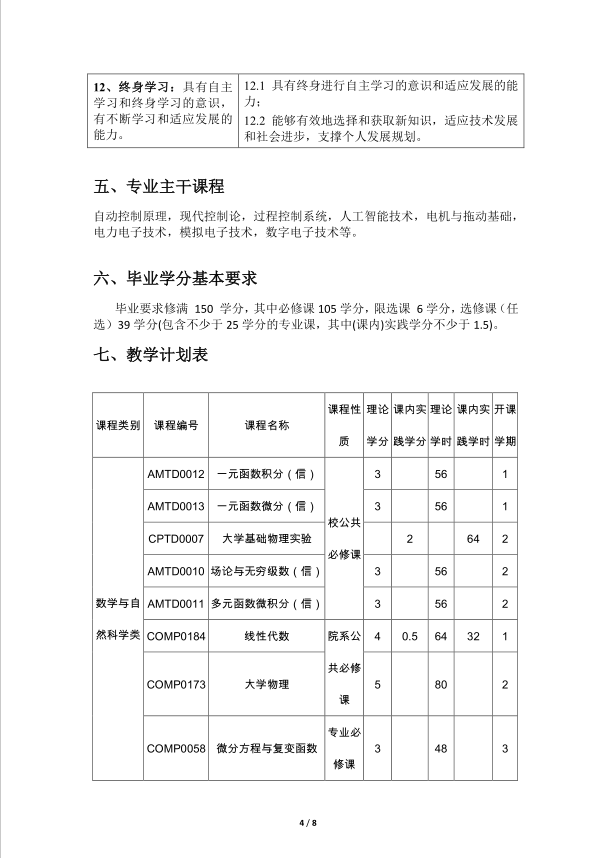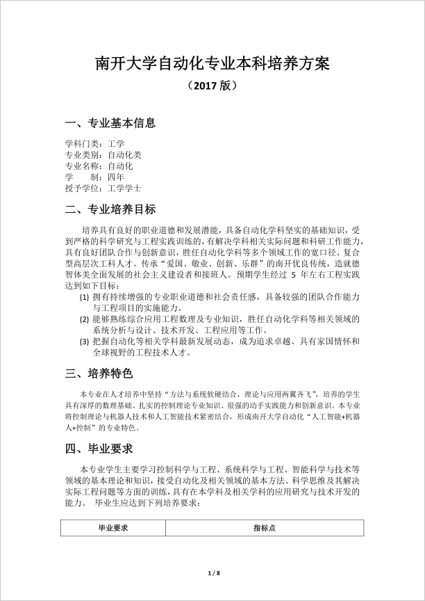 pa集团官网入口自动化专业本科培养方案 (2017版)